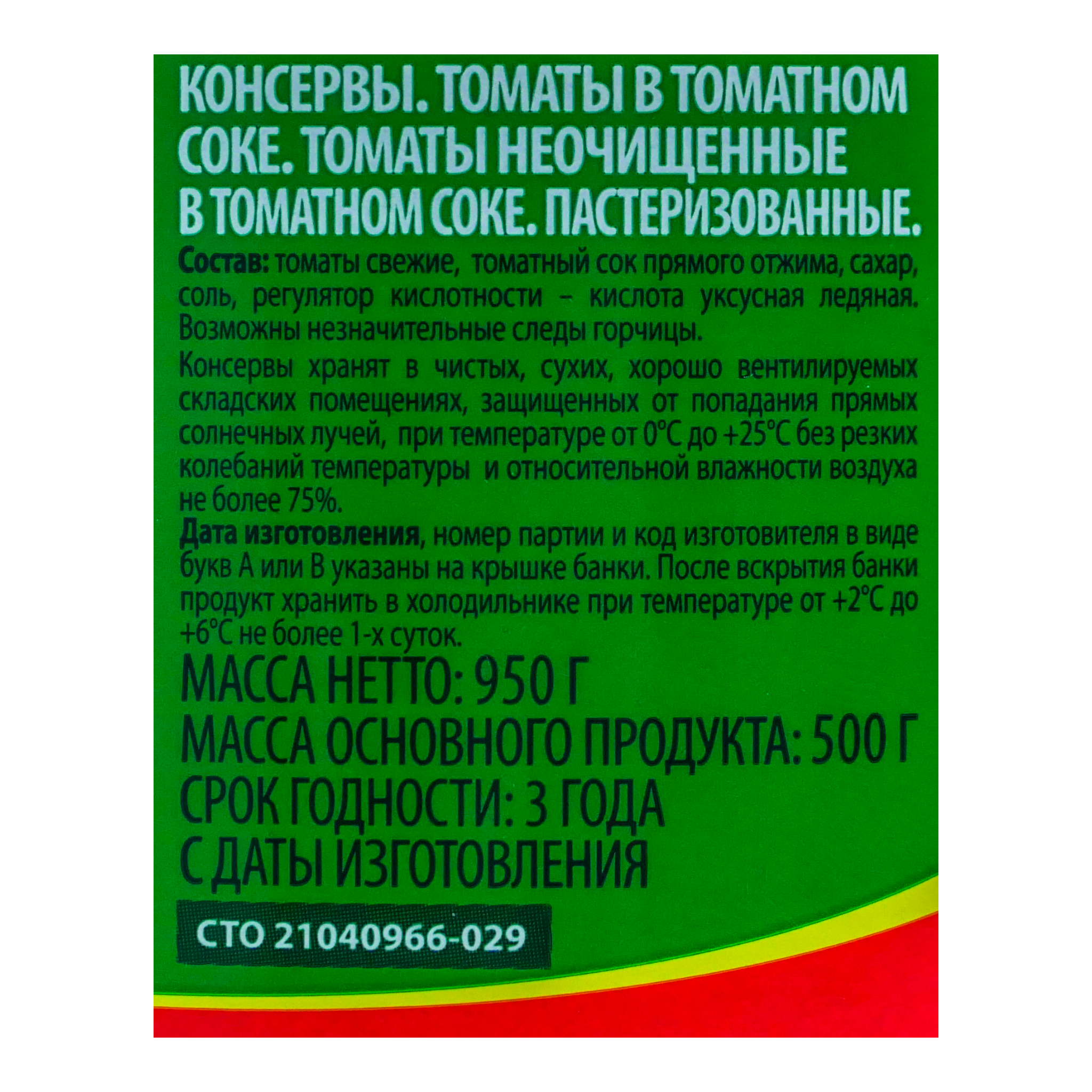 Томаты Дядя Ваня 950г в томатном соке неочищ ст/б