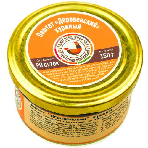 Паштет от ТК Нижегородптица НН 150г "Деревенский" куриный.