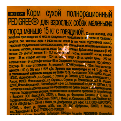 Корм д/собак Педигри 500г д/взр соб мал/пород говядина