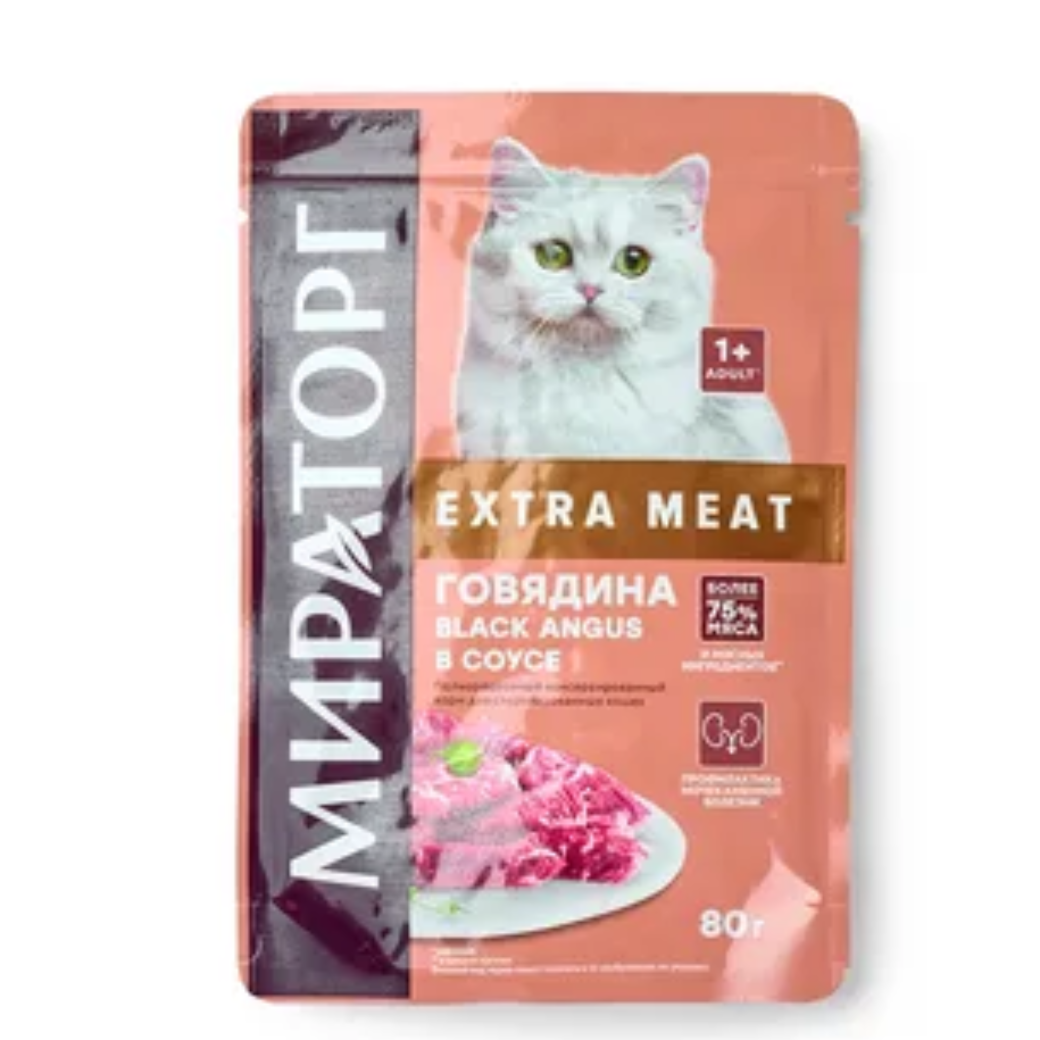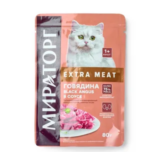 Корм д/кошек Экстра Мит 80г д/ стерил кошек гов/соус блек ангус