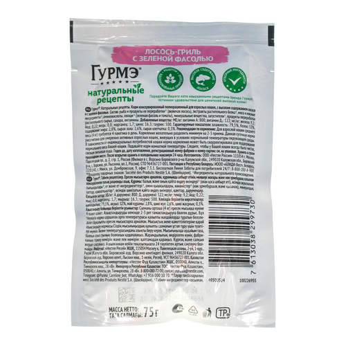 Корм д/кошек Гурмэ 75г лосось/зел фасоль натур рецепты
