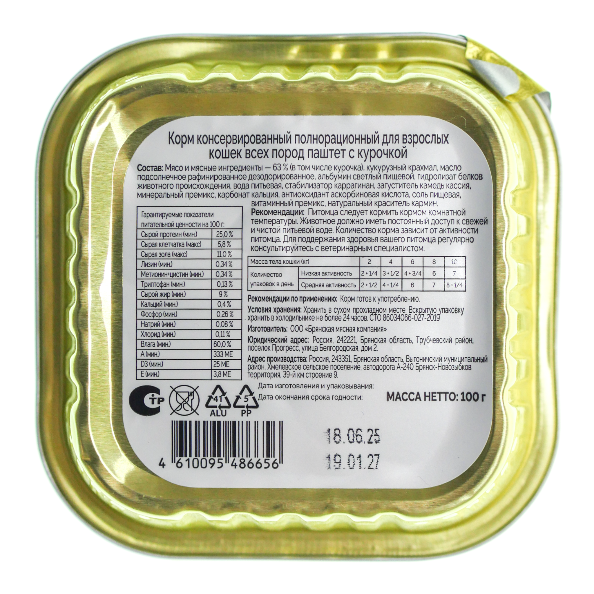 Корм д/кошек Мираторг 100г д/взрослых кошек всех пород паштет/курочкой