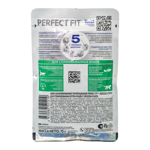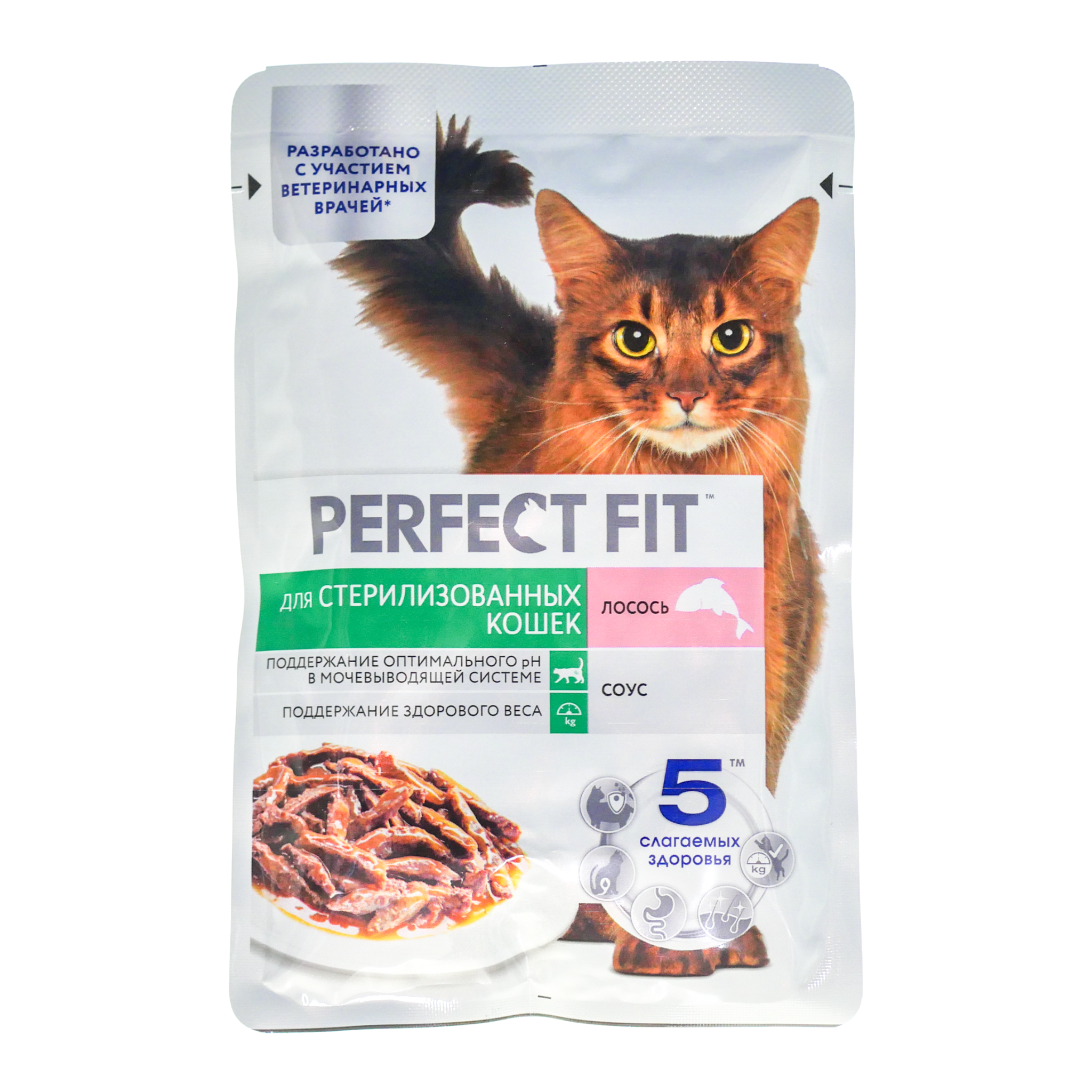 Корм д/кошек Перфект Фит 75г д/стер кош лосось/соус