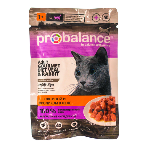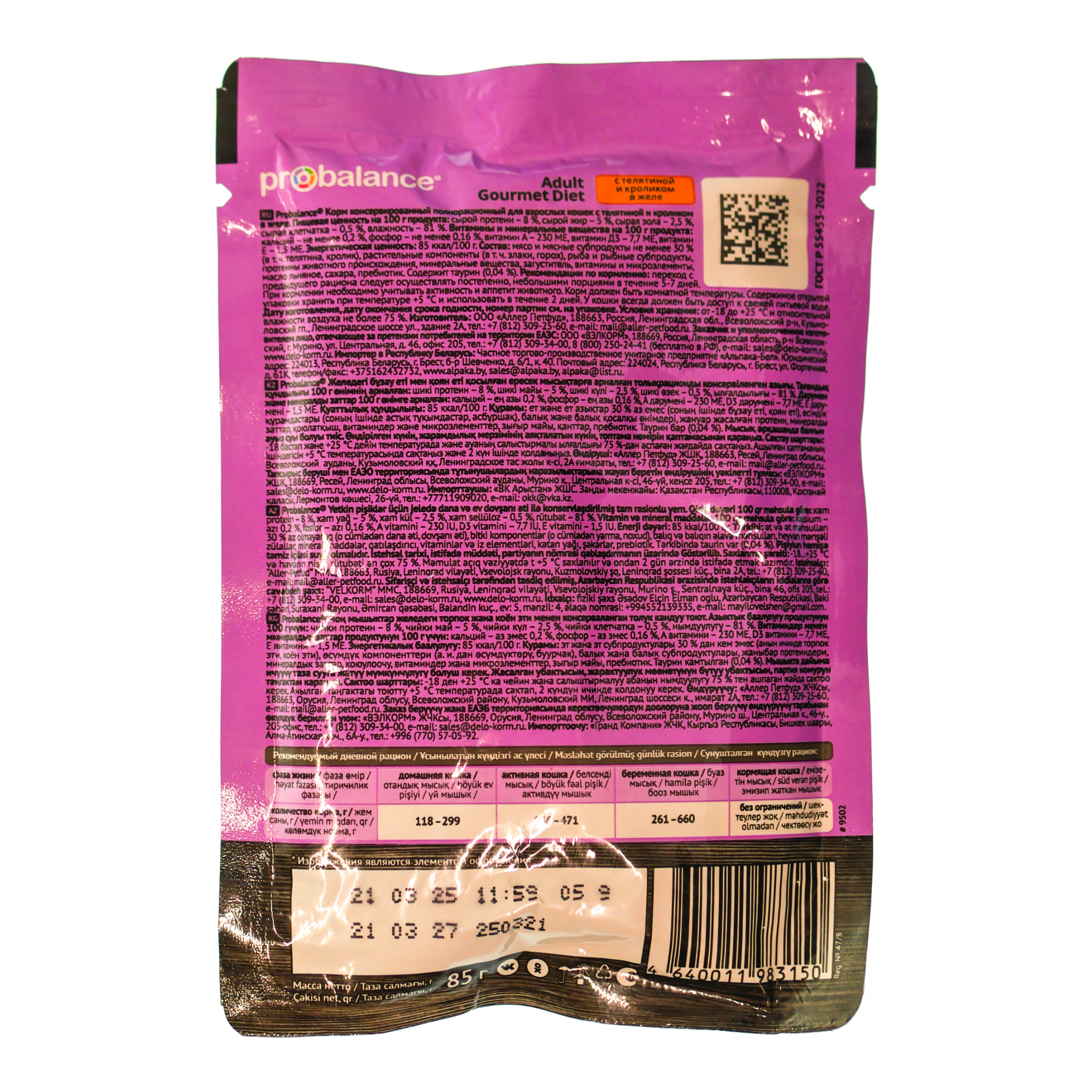 Корм д/кошек Пробаланс 85г телятина/кролик желе