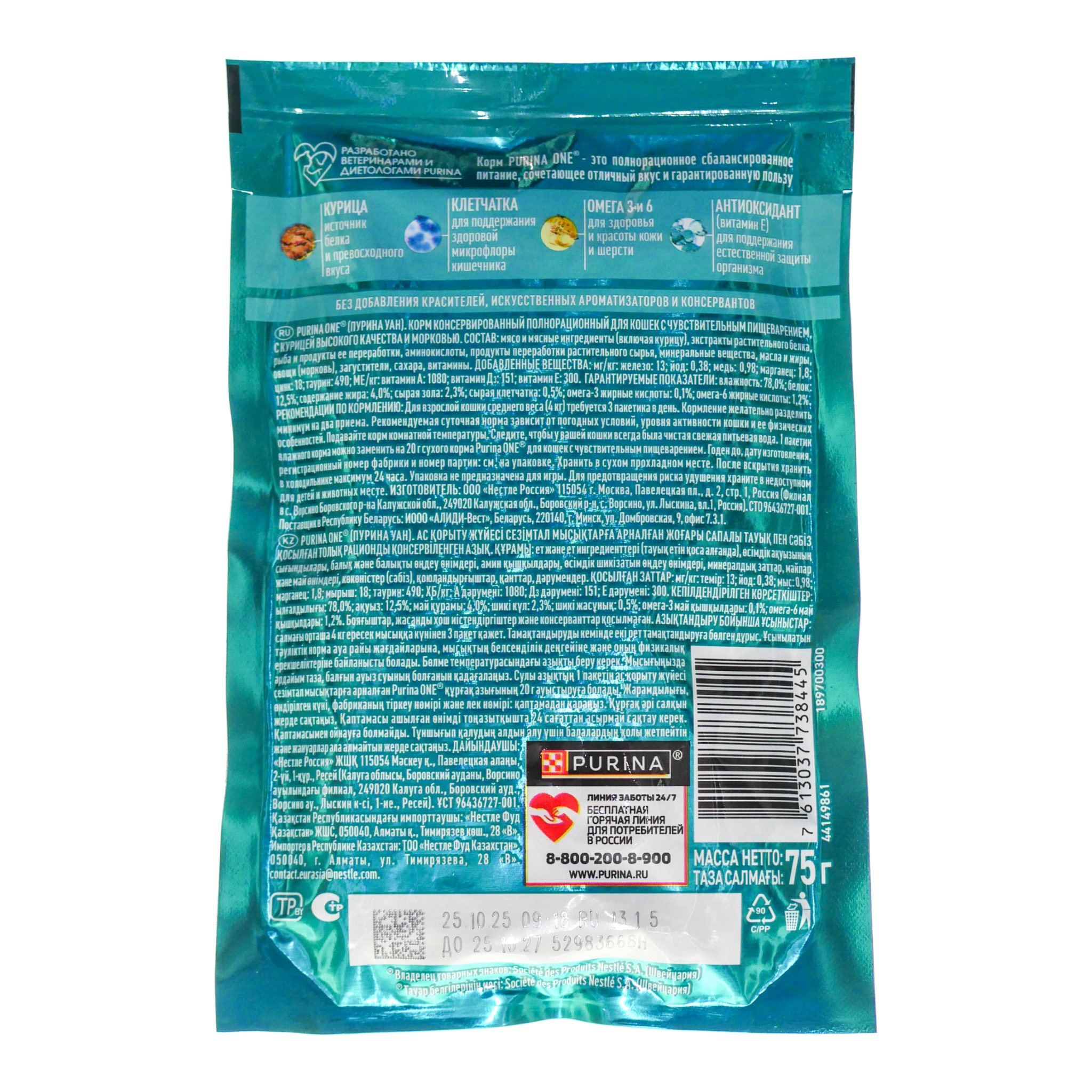 Корм д/кошек Пурина Ван 75г чувст пищ курица