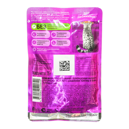 Корм д/кошек Вискас 75г рагу телятина/язык