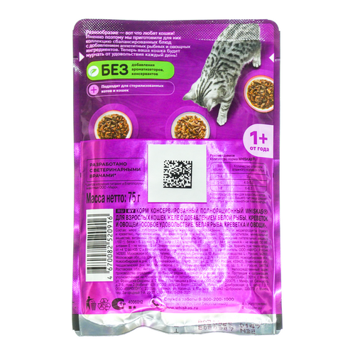 Корм д/кошек Вискас 75г желе бел рыба/креветка/овощи