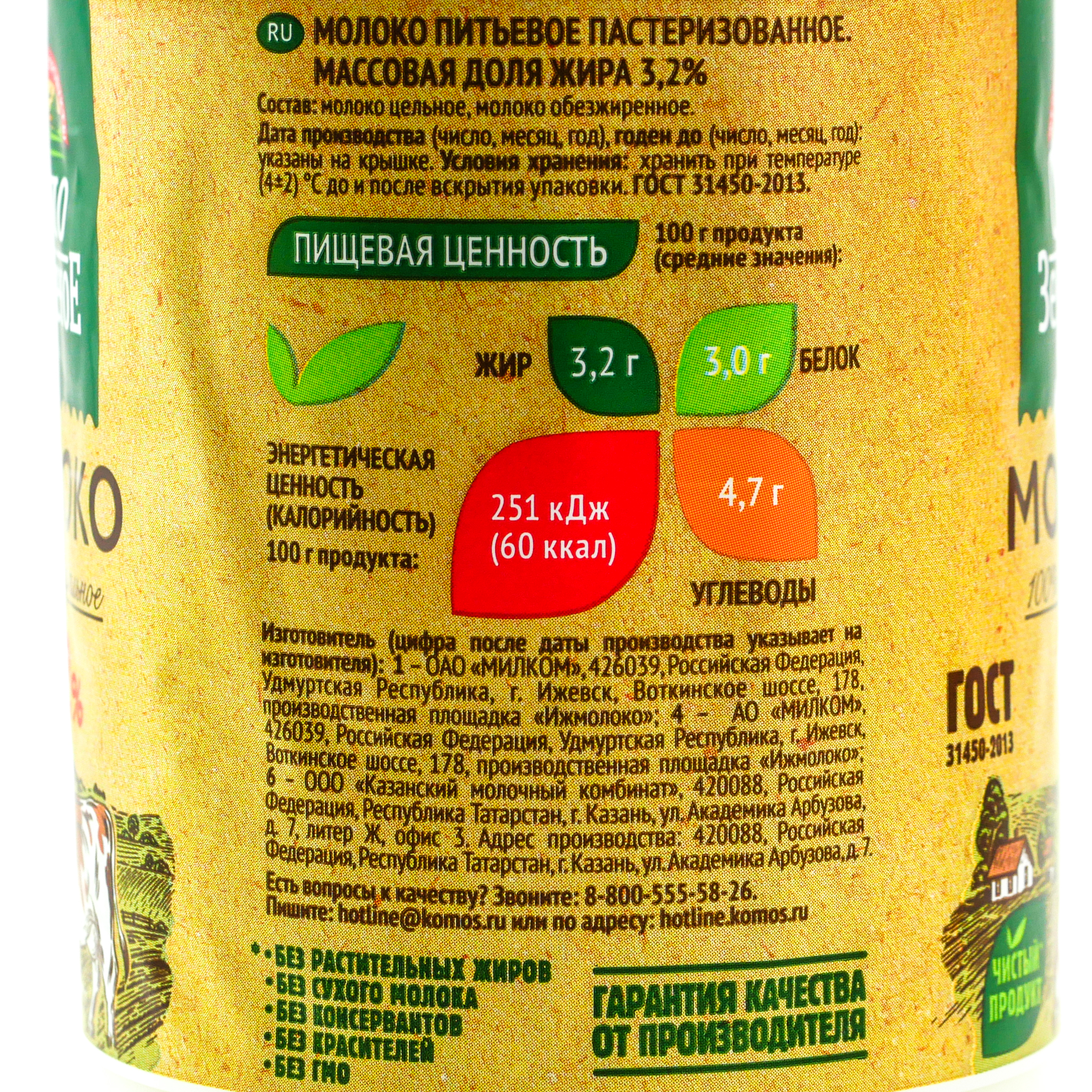 Молоко Село зеленое 0,93л 3,2% пастеризованное БЗМЖ