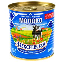 Молоко Алексеевское сгущенное цельное с сахаром 8,5%.