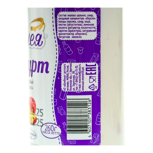 Йогурт 260г 3,2% Персик КДП Заречный БЗМЖ