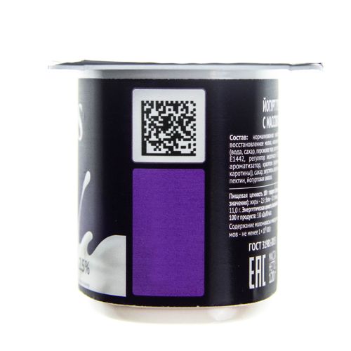 Состав: Нормализованное молоко, восстановленное молоко, наполнитель (вода, сахар, персиковое пюре, загуститель E1442, регулятор кислотности Е330, ароматизатор, красители (куркумин, каротины)), сахар, загуститель цитрусовый пектин, йогуртовая закваска.