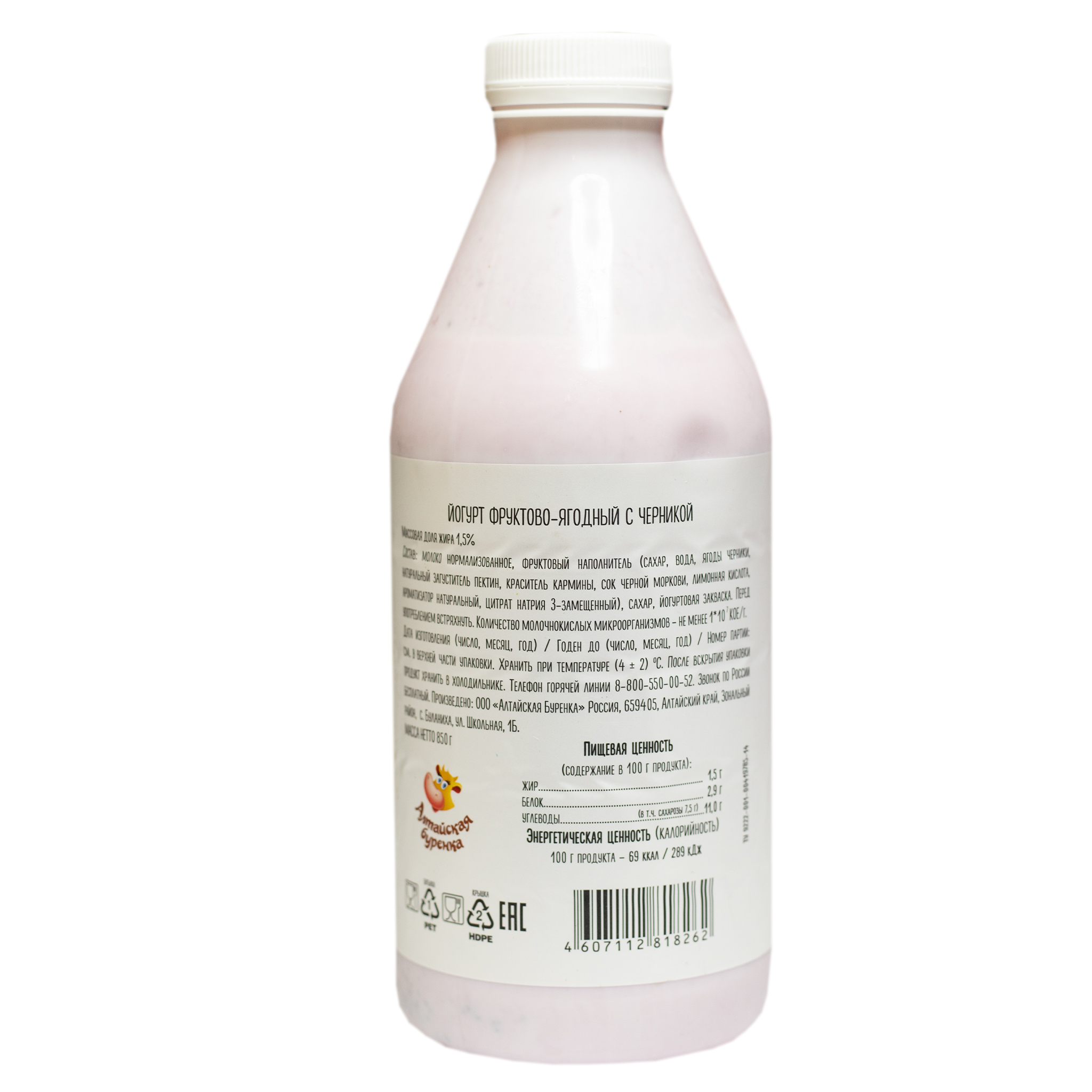 Йогурт пэт-бутылка 850 гр. 1,5% фрукт-ягодный "Черника"