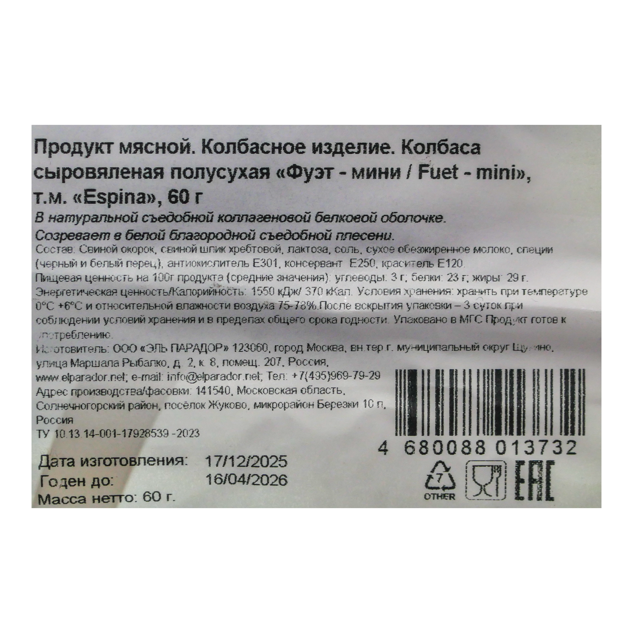 Колбаса Фуэт-мини 60г с/в п/с Эспина