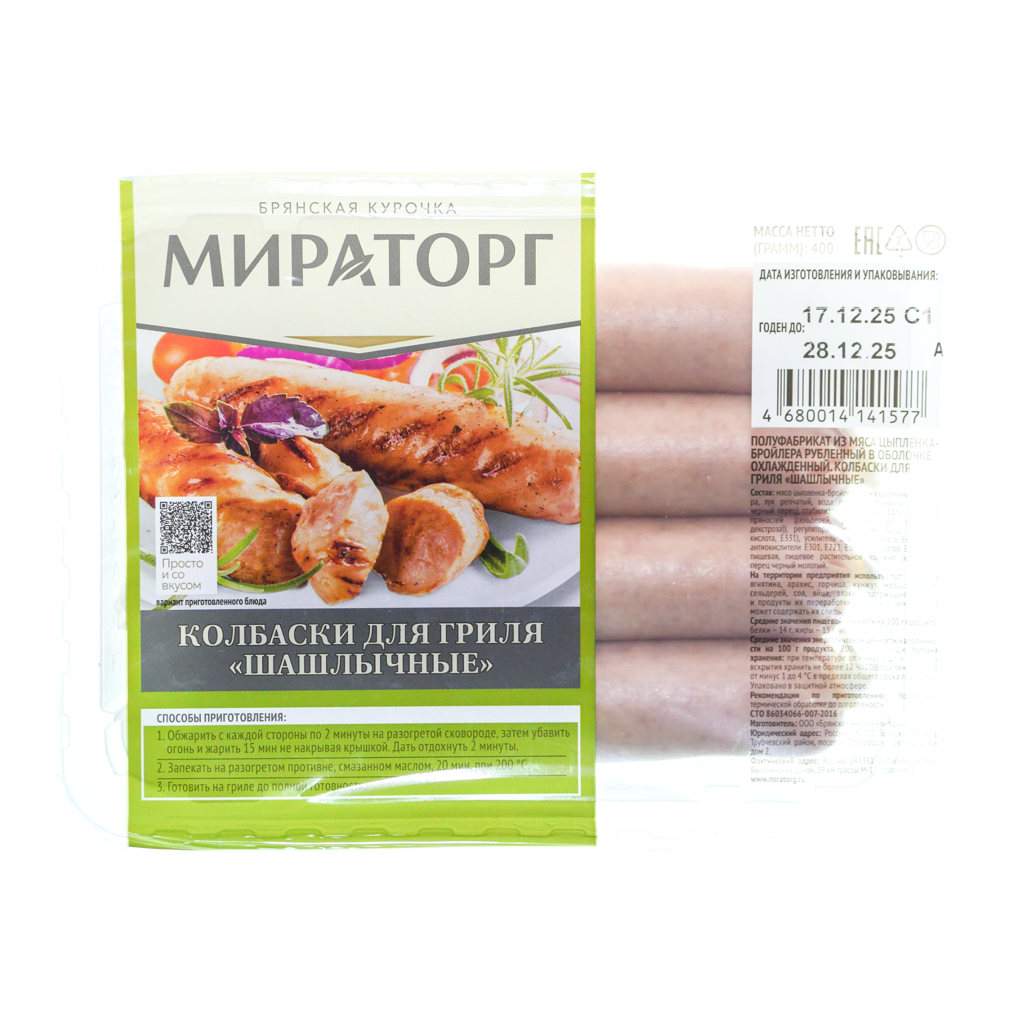 Колбаски куриные Мираторг 400г Шашлычные охлажденные