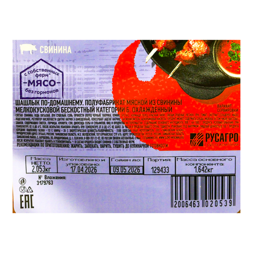 Шашлык по-домашнему 1кг свинина охл Слово Мясника
