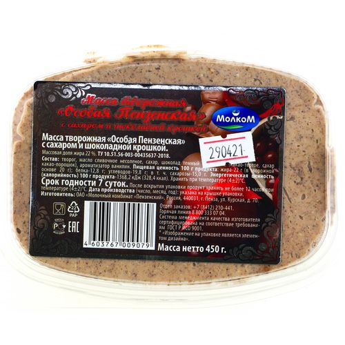 Масса творожная Молком 450г 22% Особая Пензенская шоколадная крошка БЗМЖ