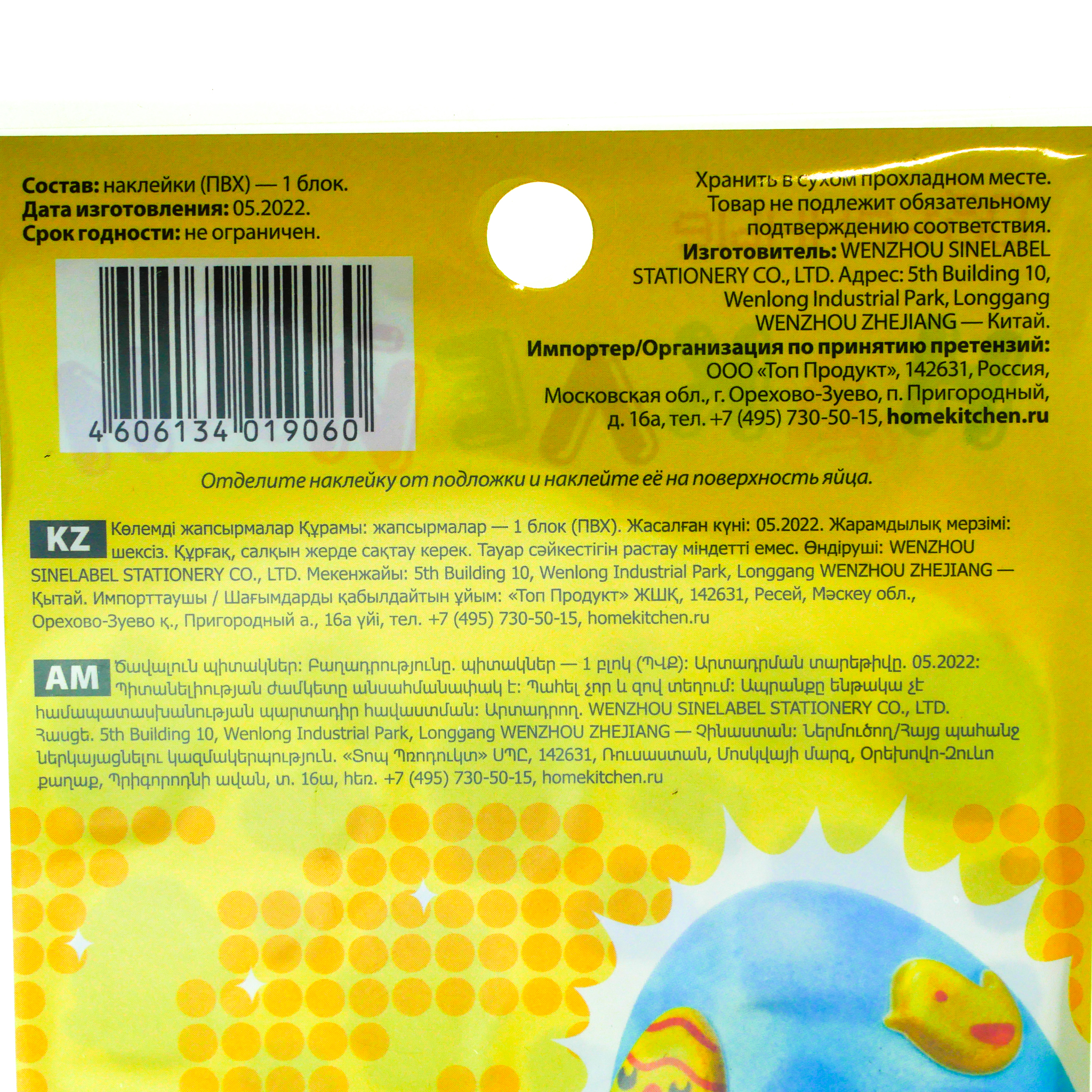 Наклейки для украшения яиц Объемные помогут подготовиться к Пасхе. Набор прост в использовании. Стикеры надежно фиксируются на гладкой поверхности скорлупы. Отделите наклейку от подложки и наклейте её на поверхность яйца.