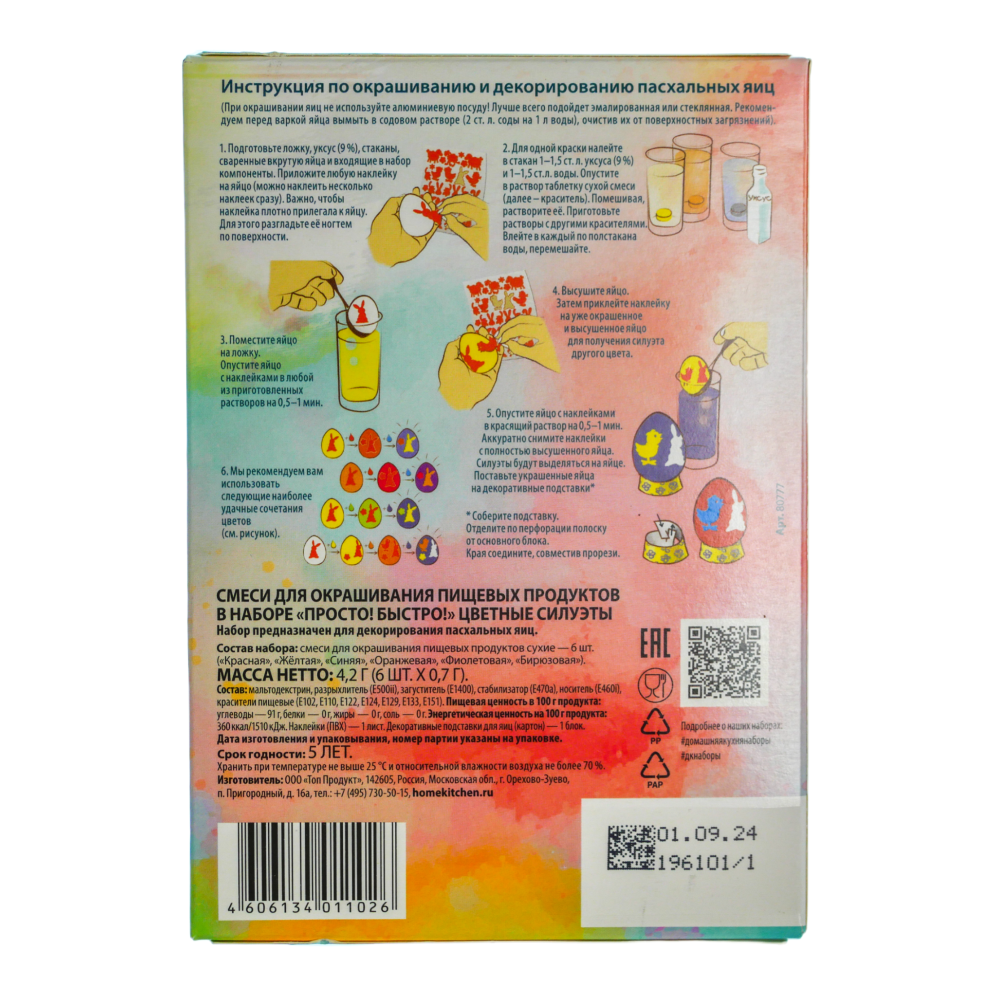 СМЕСИ ДЛЯ ОКРАШИВАНИЯ ПИЩЕВЫХ ПРОДУКТОВ В НАБОРЕ «ПРОСТО! БЫСТРО!» ЦВЕТНЫЕ СИЛУЭТЫ.