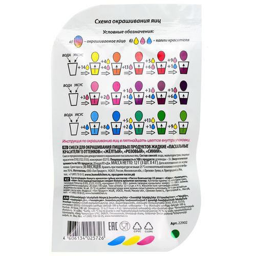 Смеси для окрашивания яиц жидкие Домашняя кухня 12г 3шт Пасхальные красители 15 оттенков