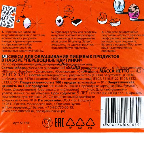 Смеси для окрашивания яиц сухие Домашняя кухня 4.2г 6шт Переводные картинки золото