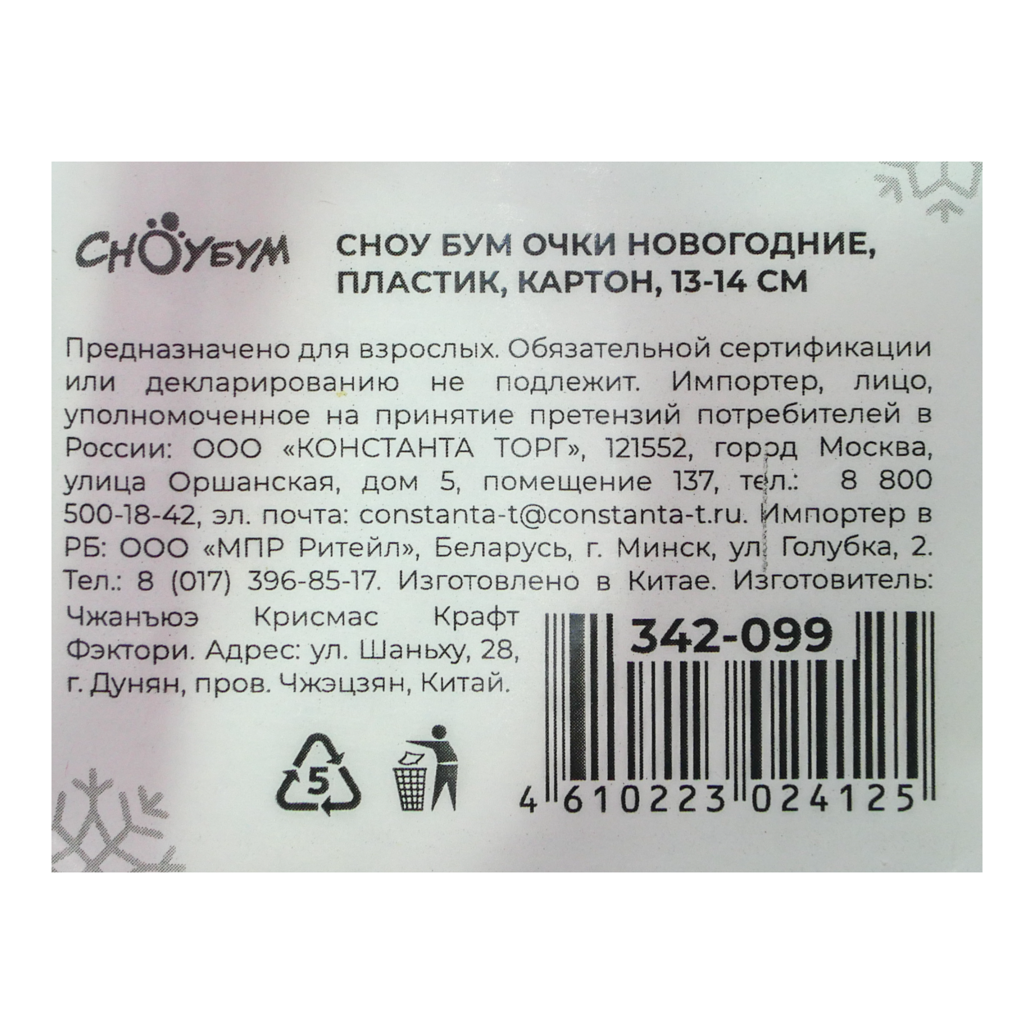 Очки новогодние 13-14см пластик/картон 6 дизайнов