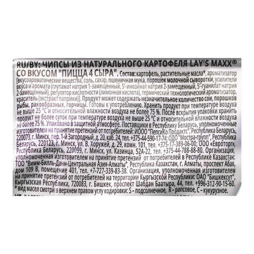 Чипсы Лейз Макс 100г пицца 4 сыра