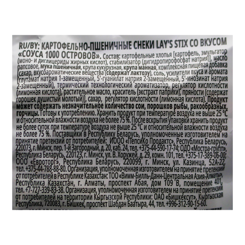 Чипсы Лейз Стикс 50г соус 1000 островов
