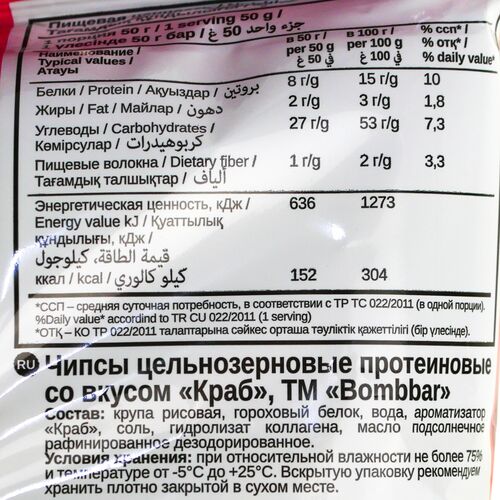Чипсы протеиновые Bombbar (Бомббар) 50г краб