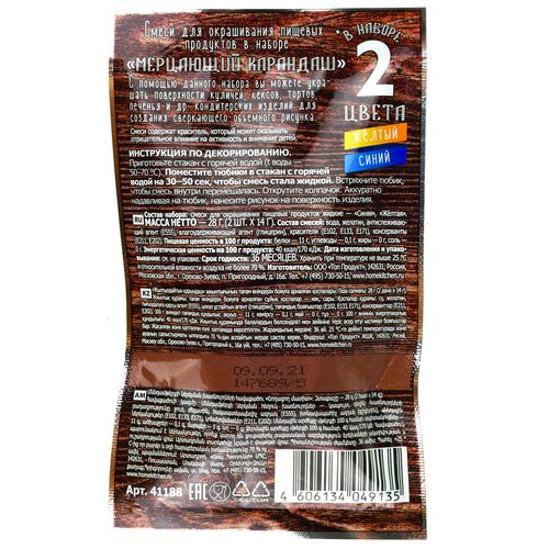 Набор для окрашивания пищевых продуктов Домашняя кухня 2шт Мерцающий карандаш синий-желтый