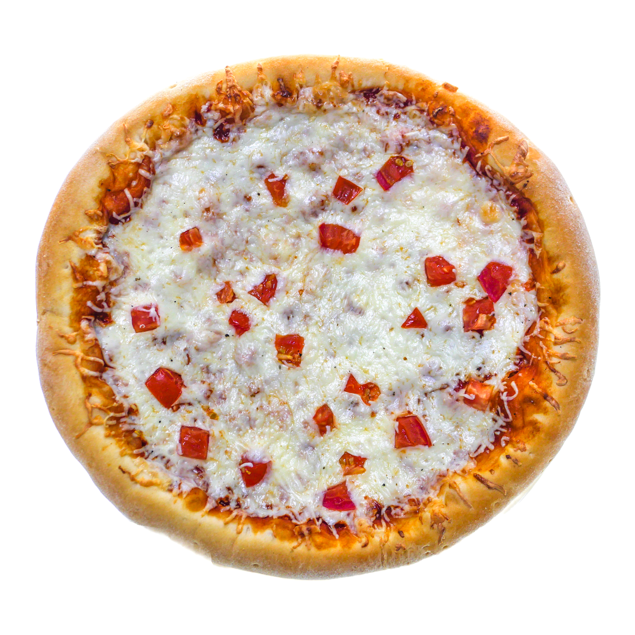 Пицца на тонком фирменном тесте с томатным соусом, свежими томатами и большим количеством сыр моцарелла. Диаметр пиццы 25 см.