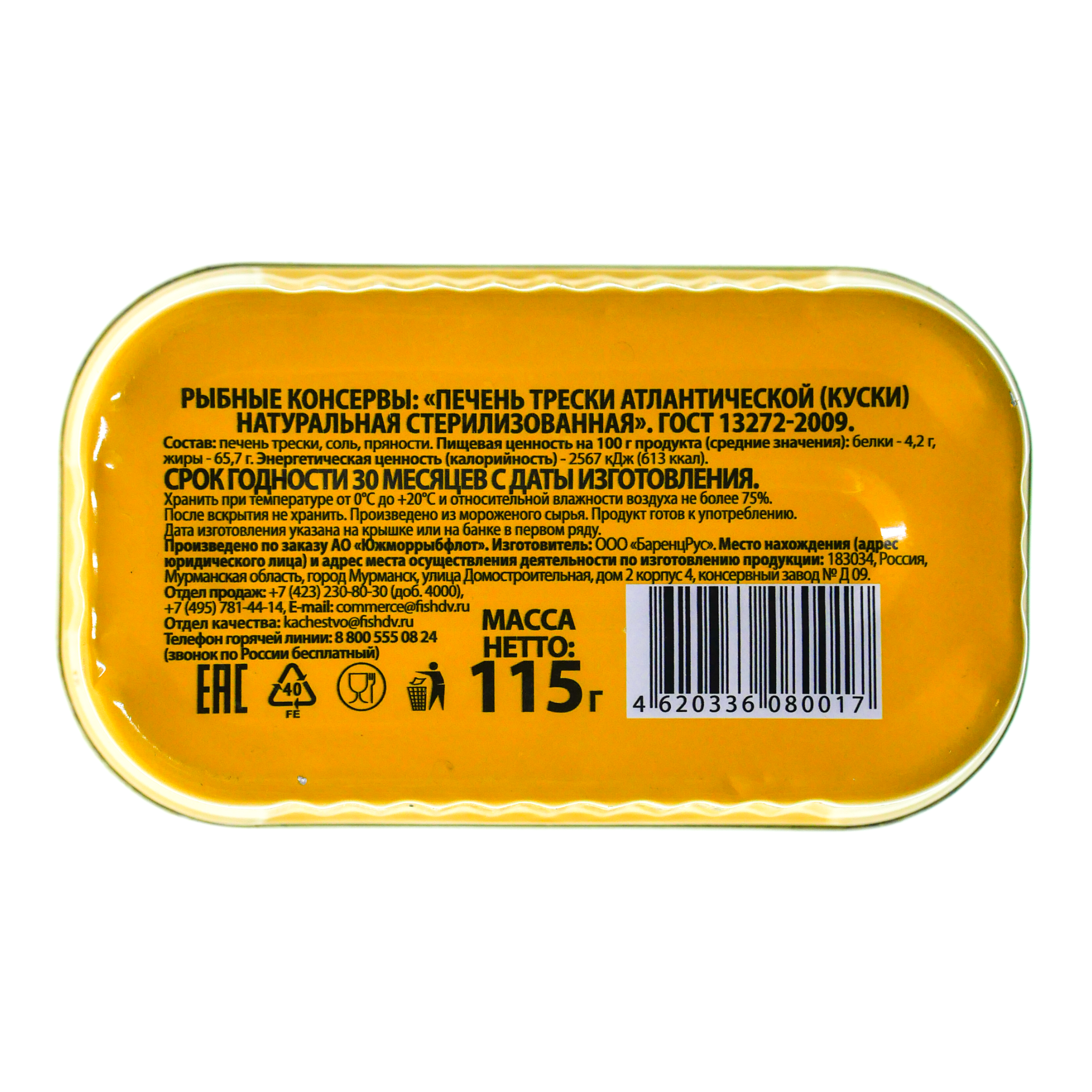 Печень трески «Доброфлот» натуральная — это рыбные консервы, приготовленные из печени атлантической трески с добавлением соли и пряностей. Продукт не содержит ГМО, искусственных добавок, сахара, ароматизаторов и других посторонних компонентов.