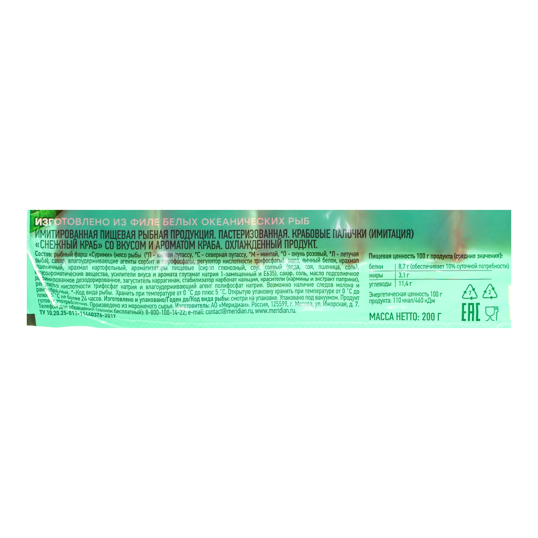 Крабовые палочки снежный краб 200г Меридиан