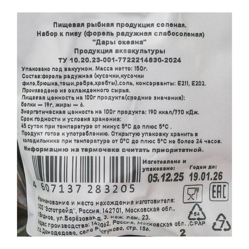 Пивной набор Дары Океана 150г с/с в/у
