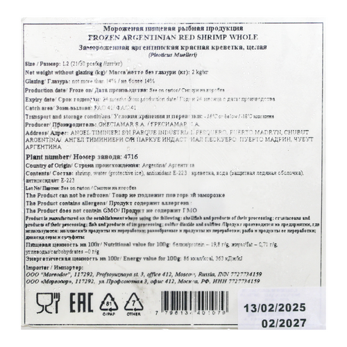 Креветки Аргентинские 2кг 21/30 с/г с/м