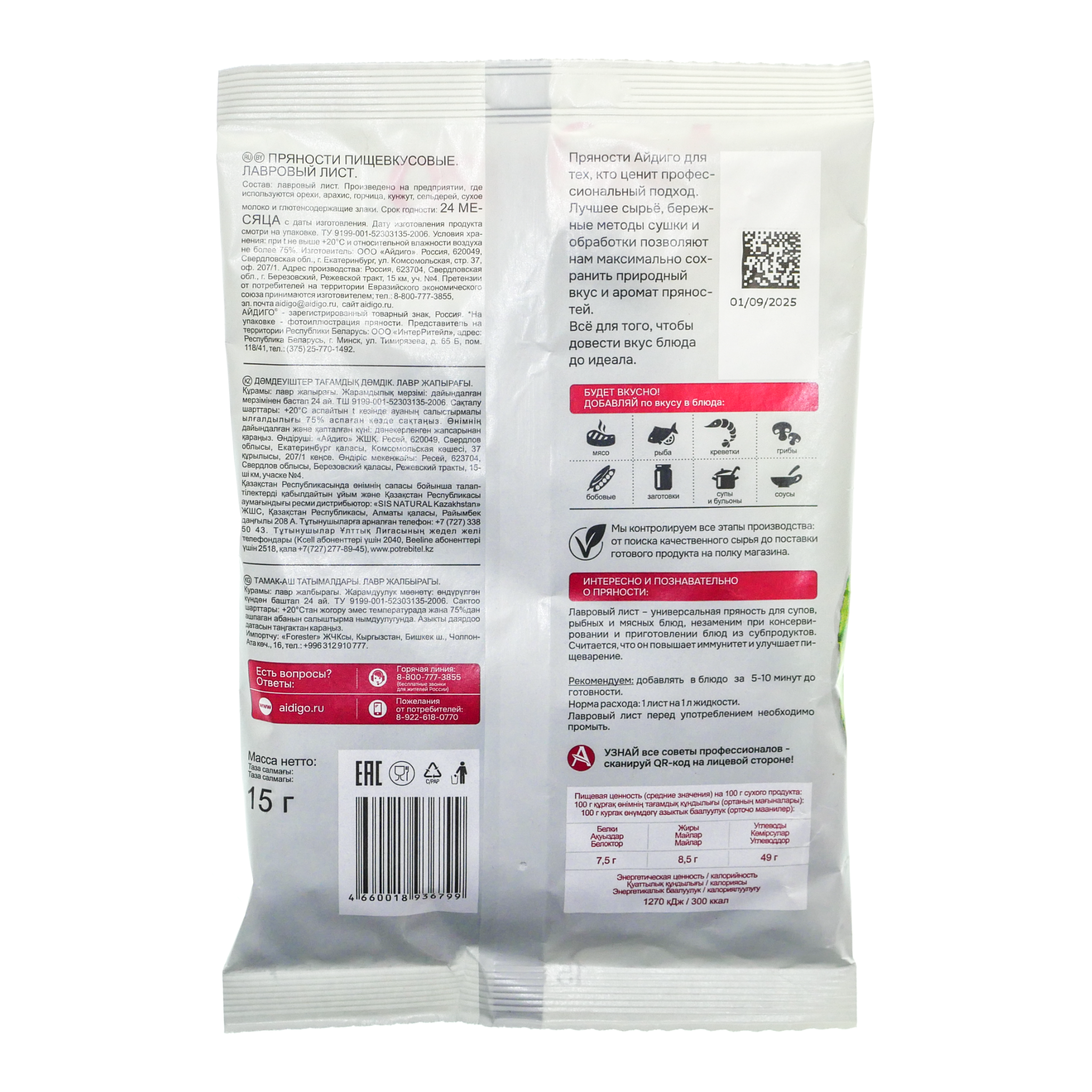 Лавровый лист (лавр благородный) применяют в кулинарии как ароматную приправу. Его используют в разных блюдах: супах, мясных блюдах, маринадах и выпечке. Лавровый лист можно использовать в виде свежих или сушёных листьев, а также в измельчённом виде (порошок). Целые листья рекомендуется вынимать из блюд при подаче к столу, так как они очень жёсткие. Пряности Айдиго для тех, кто ценит профессиональный подход. Лучшее сырьё, бережные методы сушки и обработки позволяют нам максимально сохранить природный вкус и аромат пряностей.