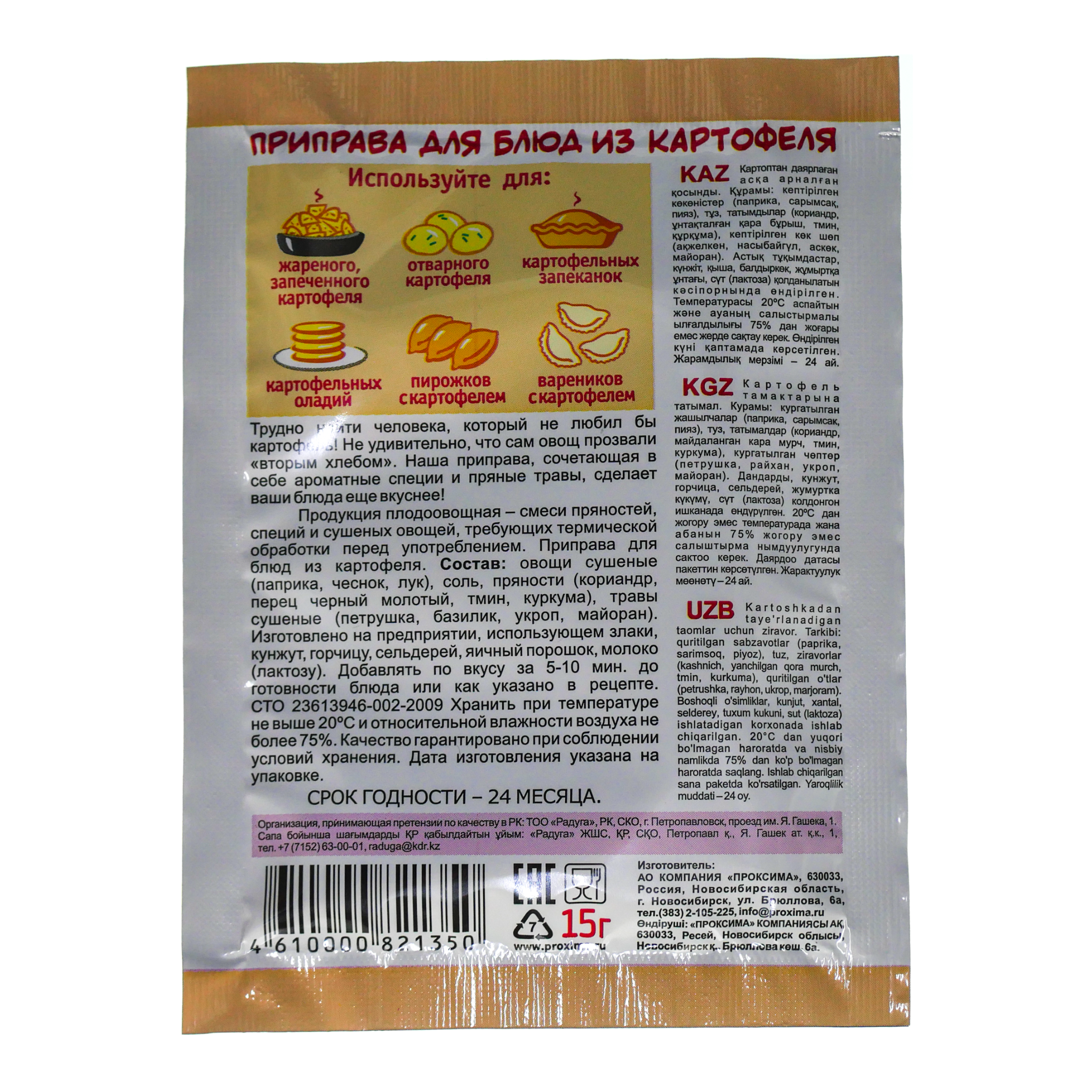 Трудно найти человека, который не любил бы картошку! Не удивительно, что сам овощ прозвали "вторым хлебом": он одинаково уместен как на праздничном столе, так и в качестве простого ужина в семье. Из картофеля вы можете приготовить гарниры: отварной картофель, жареный, запеченный, картофельное пюре, картофельные запеканки, оладьи, пирожки с картофелем, вареники и т.д. Наша приправа сочетает в себе ароматные специи и пряные травы. Она сделает ваши блюда еще вкуснее.