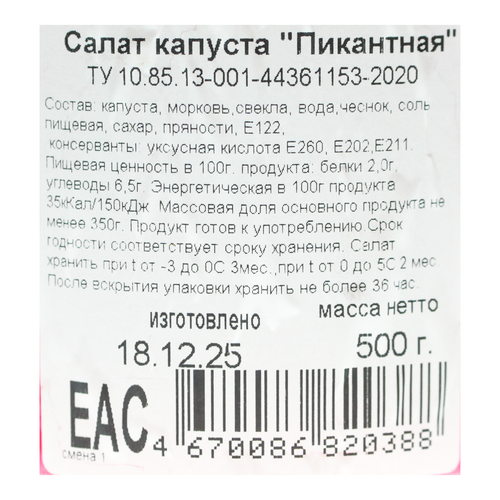 Салат капуста Пикантная 500г Остров Изобилия