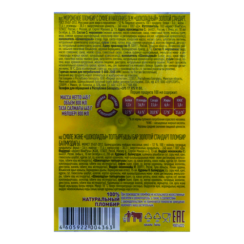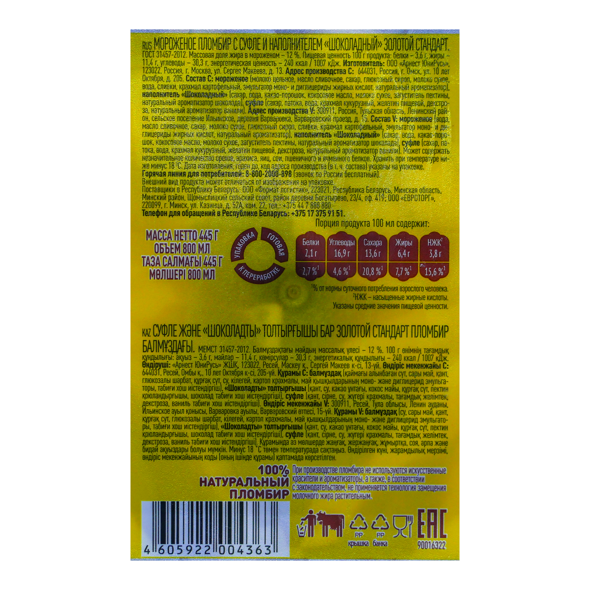 Мороженое Золотой Стандарт 445г пломбир/суфле ванна Инмарко БЗМЖ