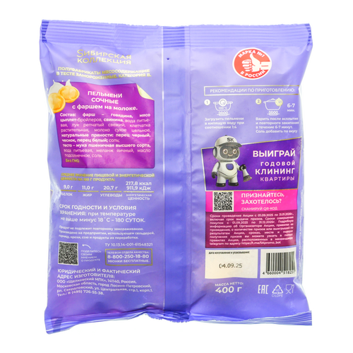 Пельмени Сибирская коллекция 400г сочные фарш на молоке