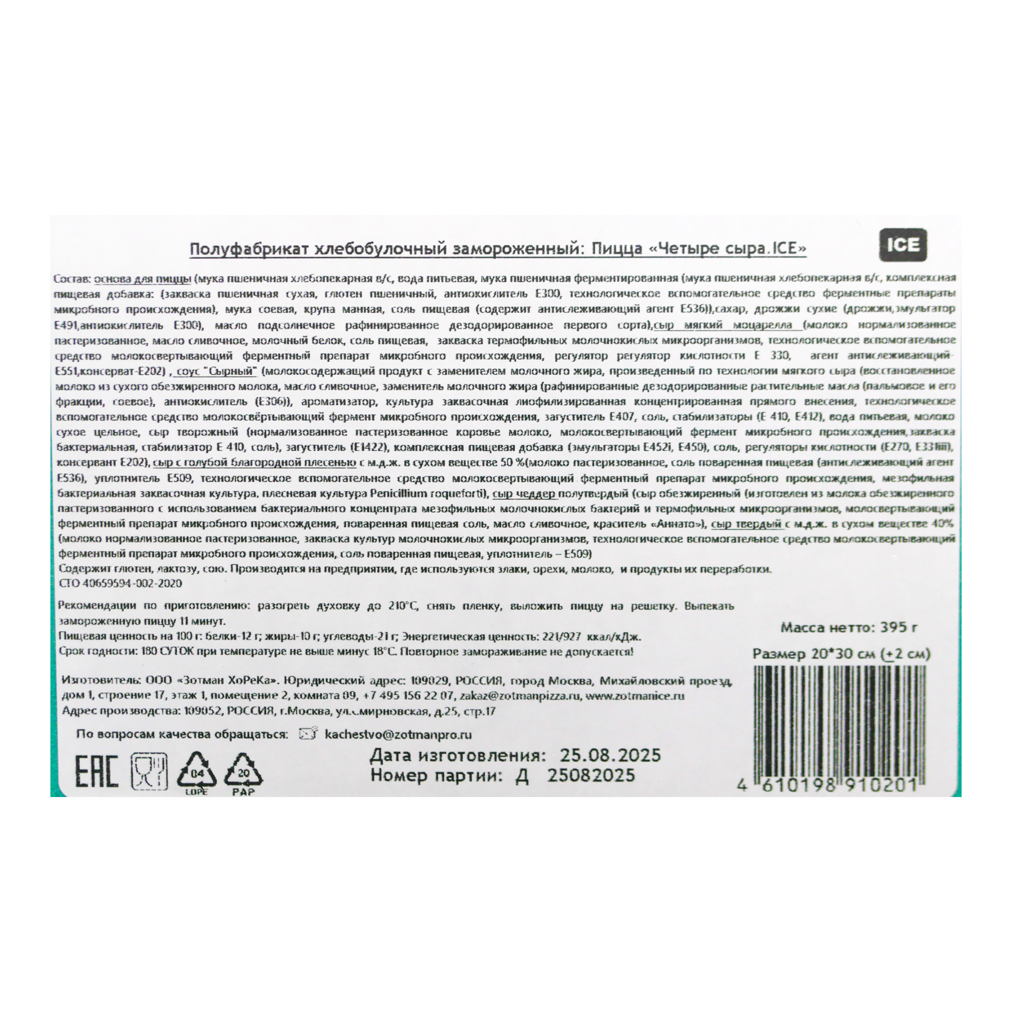 Пицца Зотман 412г зам Четыре сыра замороженная