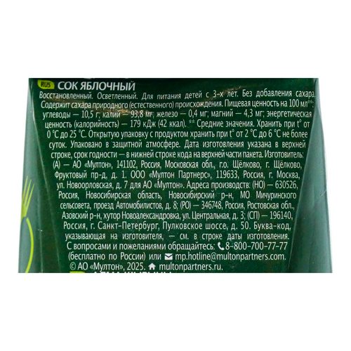 Состав: Сок яблочный восстановленный осветленный.
