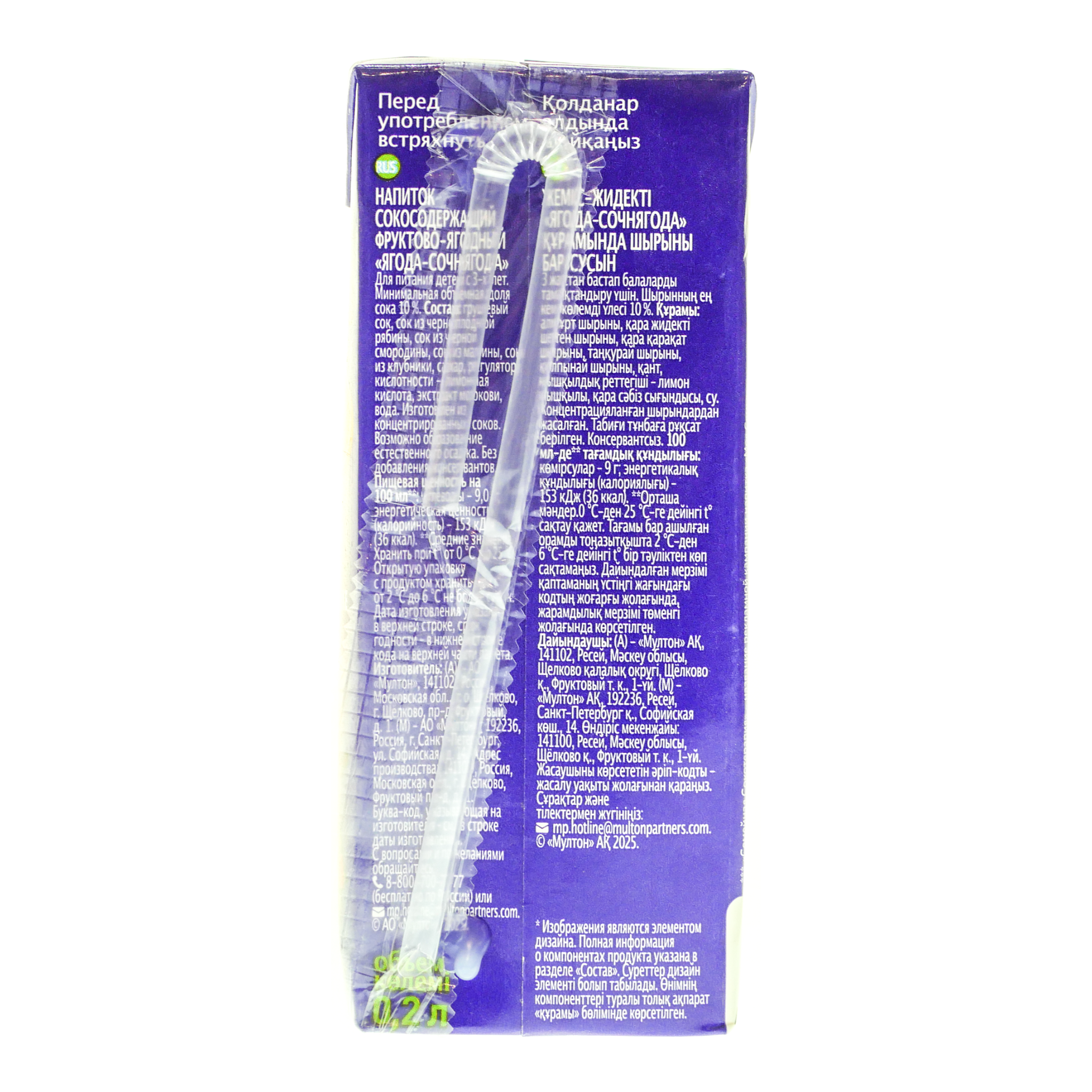 Сокосодержащий напиток Моя семья 0,2л ягода-сочнягода т/п