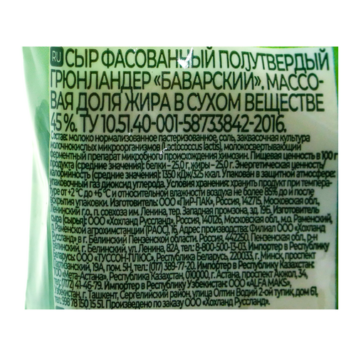 Сыр Баварский 180г 50% БЗМЖ
