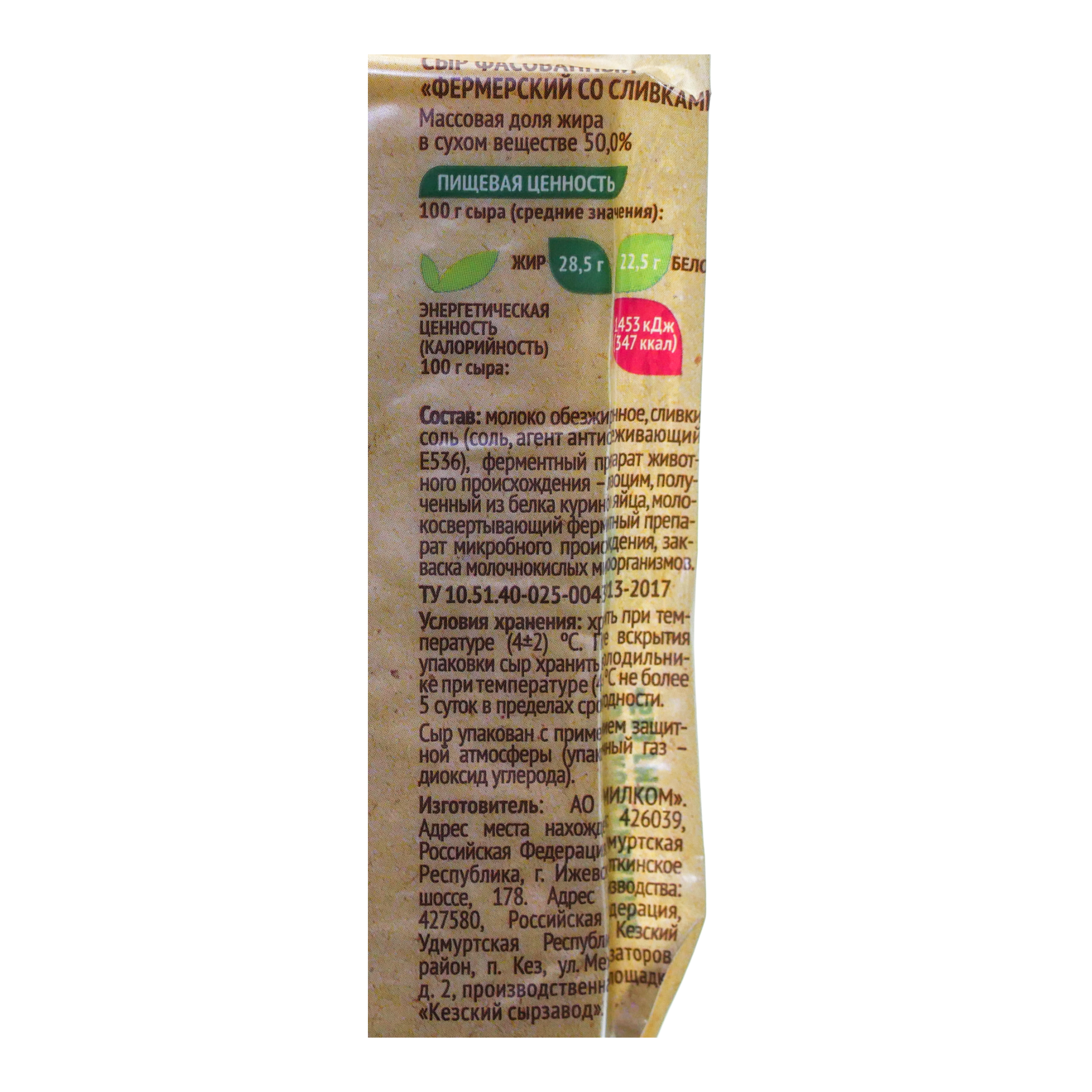 Сыр Фермерский 200г 40% со сливками Село Зеленое БЗМЖ