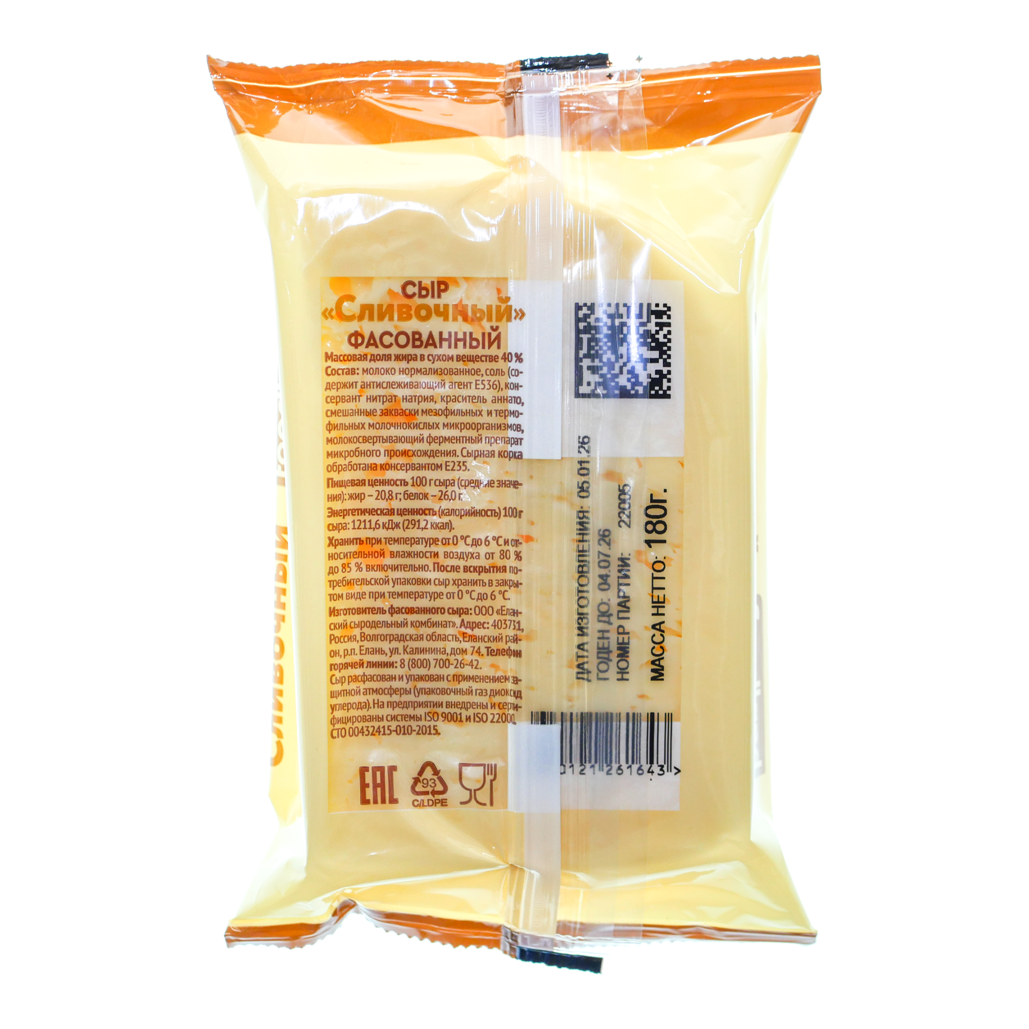 Сыр Сливочный 180г 40% ф/п Еланский СЗ БЗМЖ