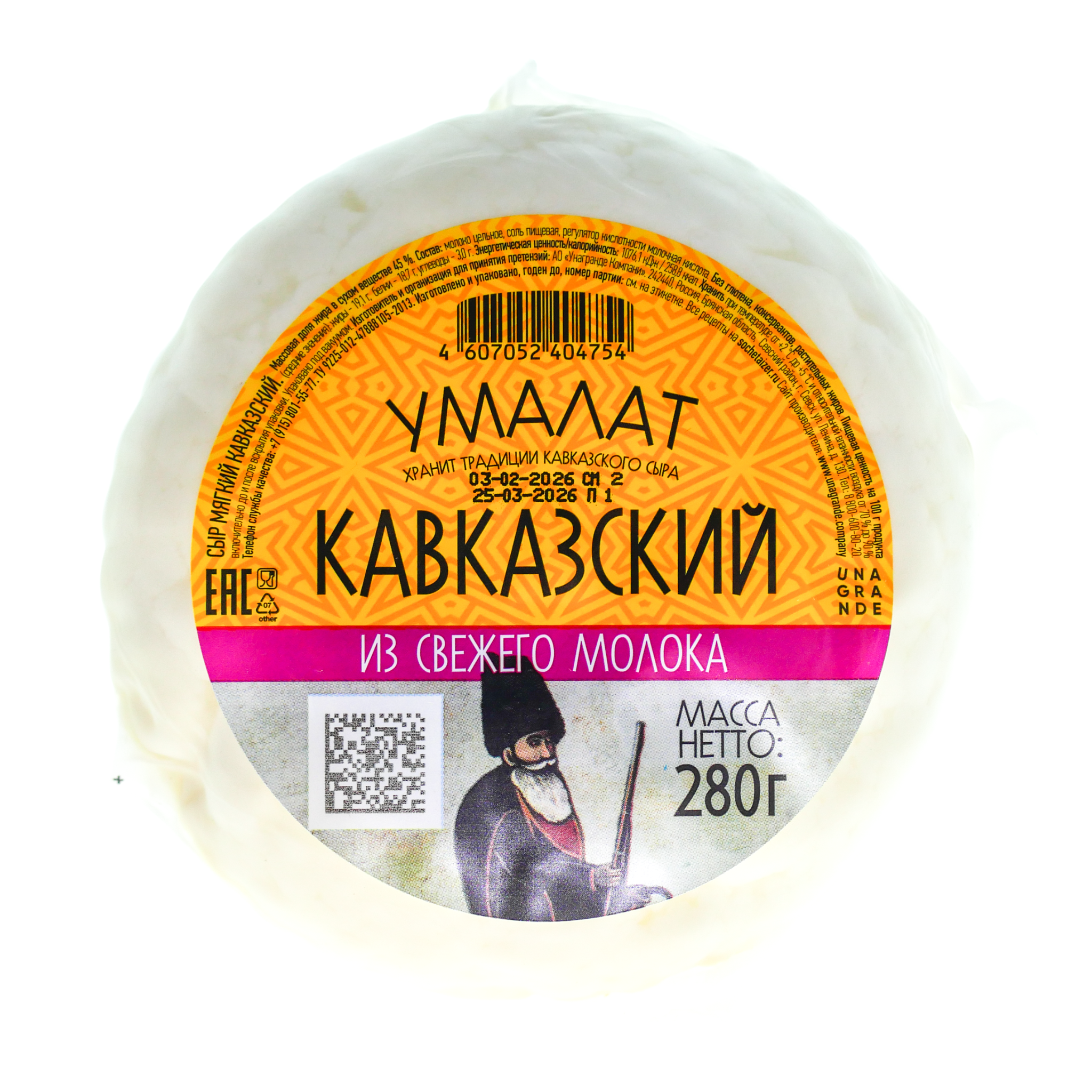 Кавказский сыр зернистой консистенции выпускается по традиционной технологии адыгейского сыра — из отборного молока без каких-либо добавок. Обладает легким молочным вкусом и сладковатым послевкусием. Без глютена, консервантов, растительных жиров.