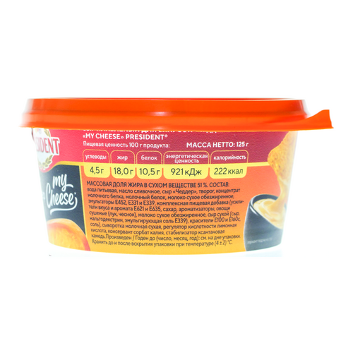 Сыр Президент 125г 51% плавл чеддер БЗМЖ