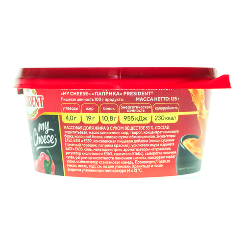 Сыр Президент 125г 51% плавл паприка БЗМЖ