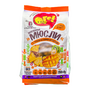 Запечённые мюсли «Ого!» с малиной и черникой — готовый завтрак на основе зерновых хлопьев овса и воздушных рисовых шариков, запечённых в сиропе. Дополнение — изюм, сушёная малина, черника и клюква. Рекомендуется употреблять: в сухом виде или с молоком, кефиром, йогуртом, соком. Без пальмового мала, консервантов и красителей. Можно в пост! Продукт может содержать следы орехов, арахиса, кунжута и продукта переработки сои.