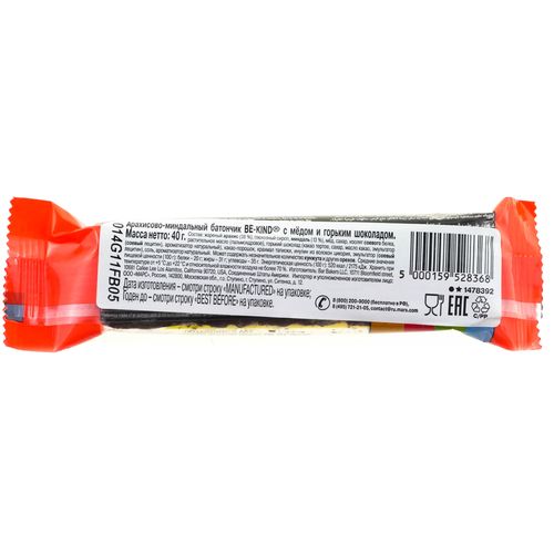 Батончик ореховый Be-Kind (Би-Кайнд) 40г арахис-миндаль-мед-горький шоколад